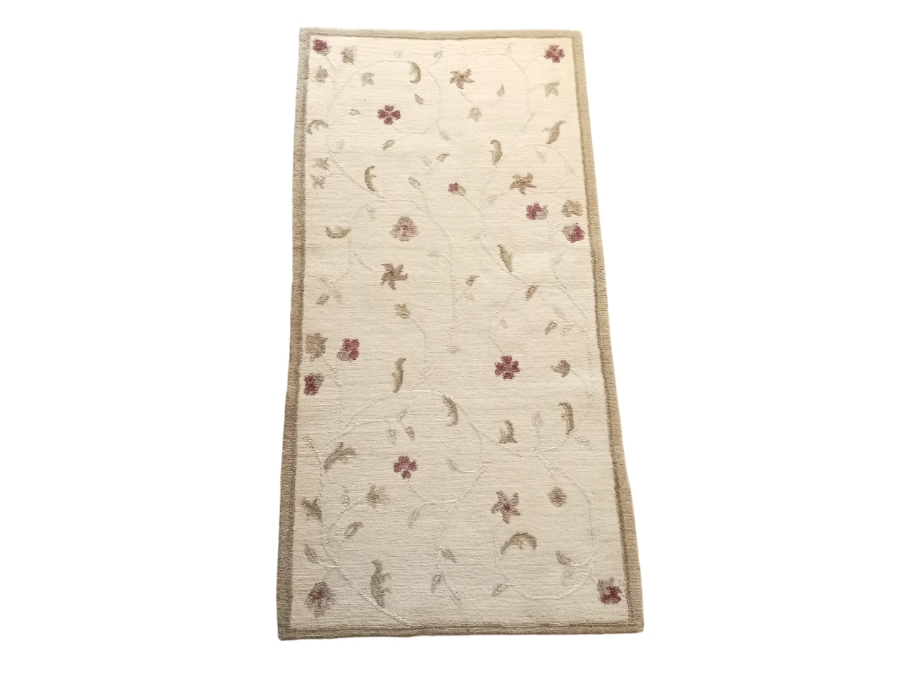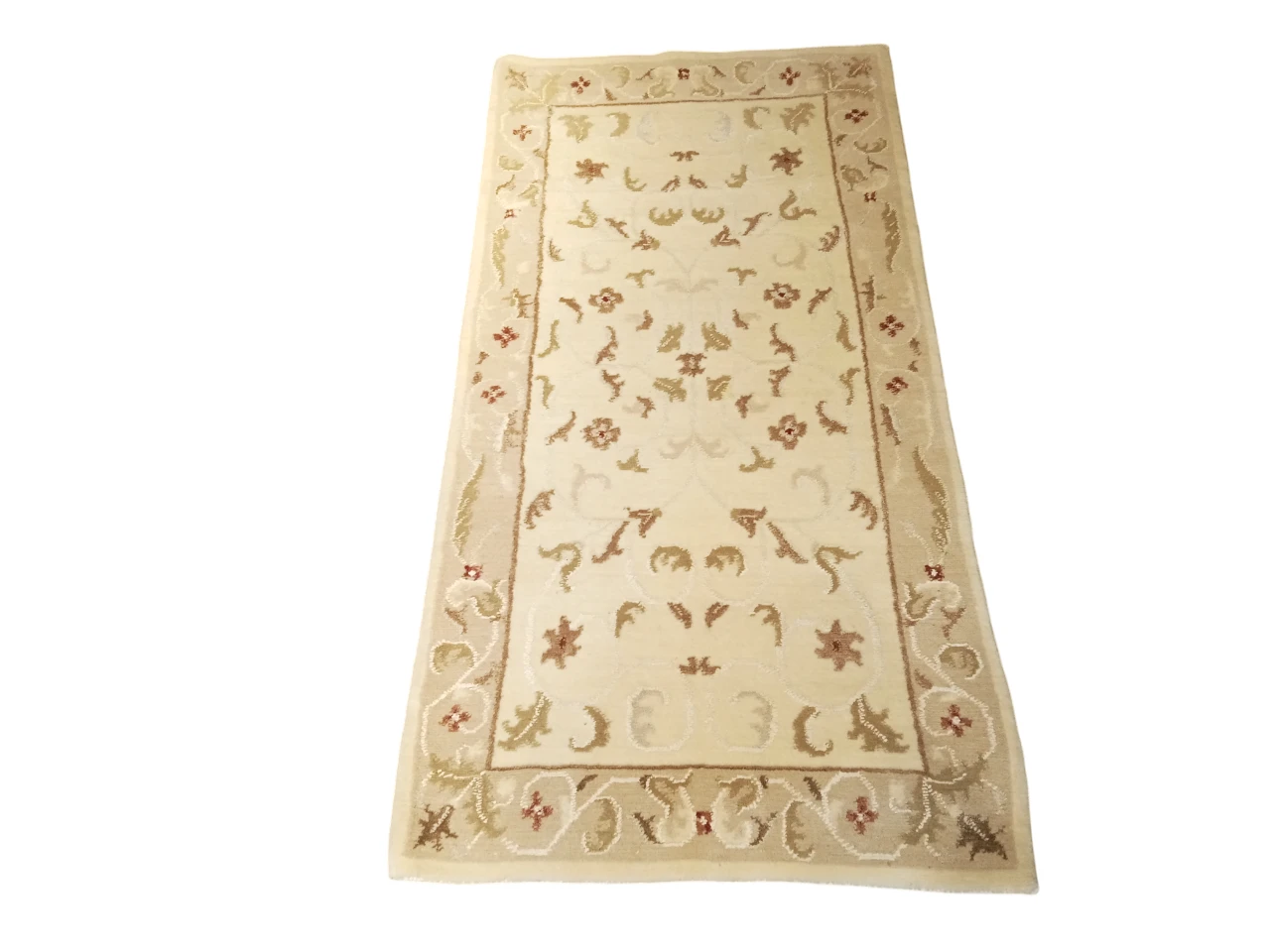 Handknotted Nepali Woolen Carpet Rug 80 Knots 73x147 cm White Traditional
